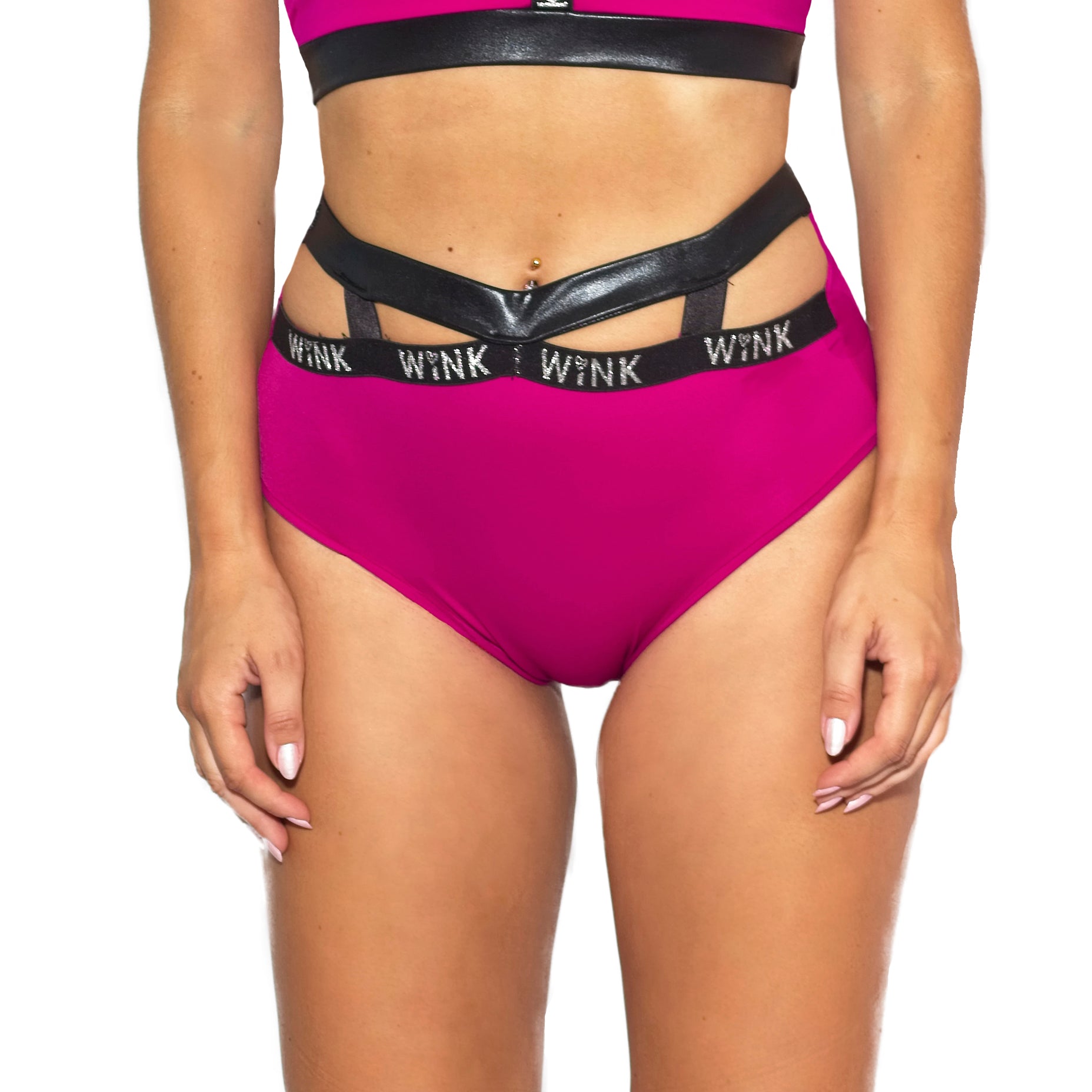 Double front layer with sparkly Lurex elastic and wetlook waistband.