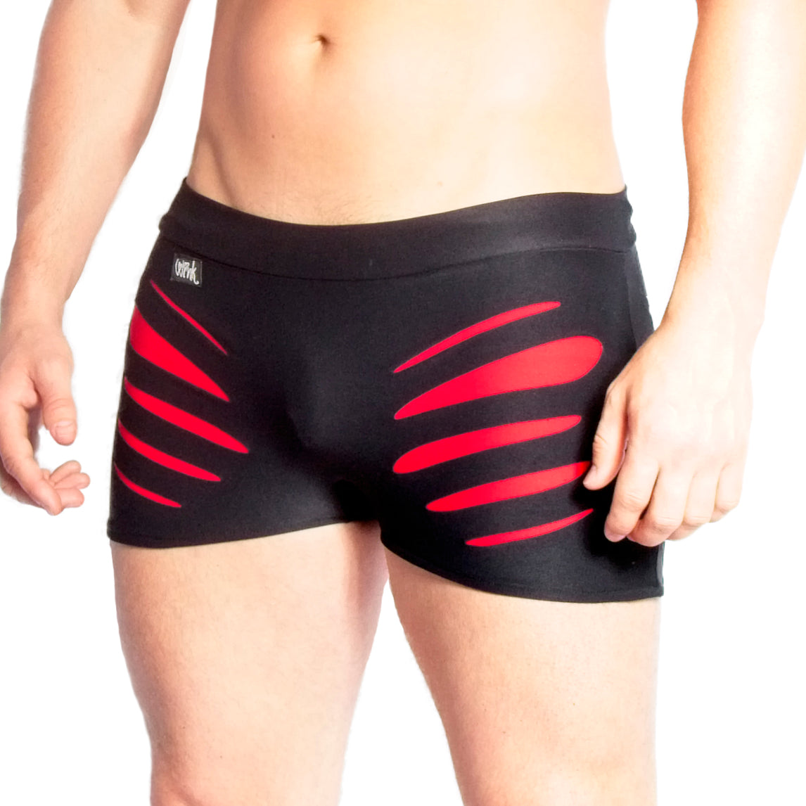 High quality men's shorts with funky contrast colouRed slashes on the front. Works as a second skin providing support and comfort. Made from Meryl Sport Lycra with anti-bacterial and moisture wicking properties.