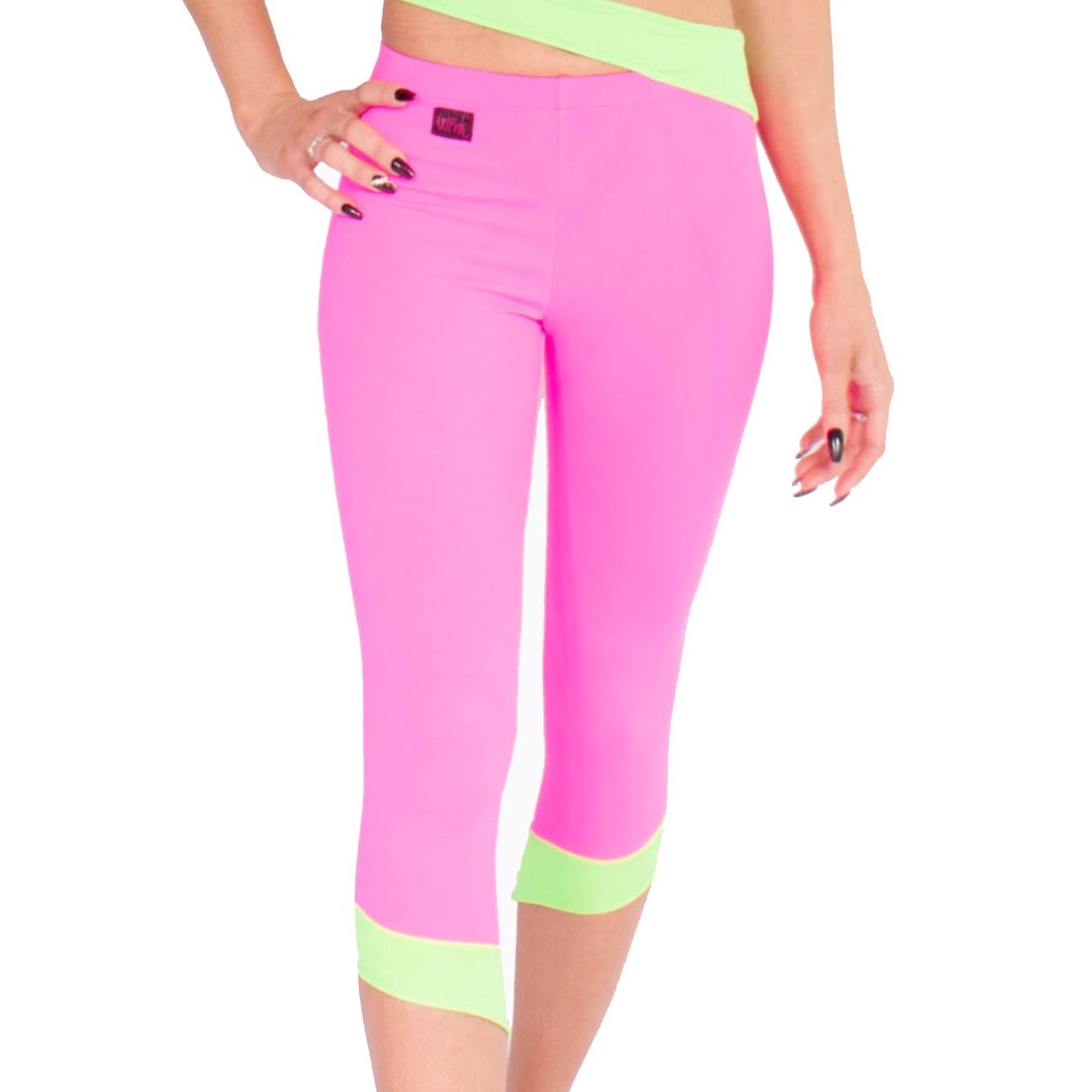 Siren Cropped Leggings - Neon Pink / Apple Green