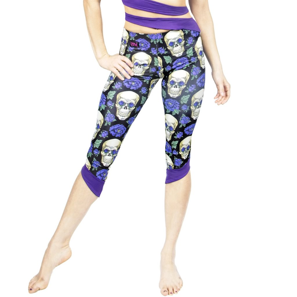 Siren Print Cropped Leggings - Skull Flowers / Purple